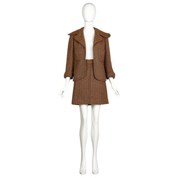VINTAGE GEOFFREY BEENE 1970S BROWN TWEED SKIRT SUIT