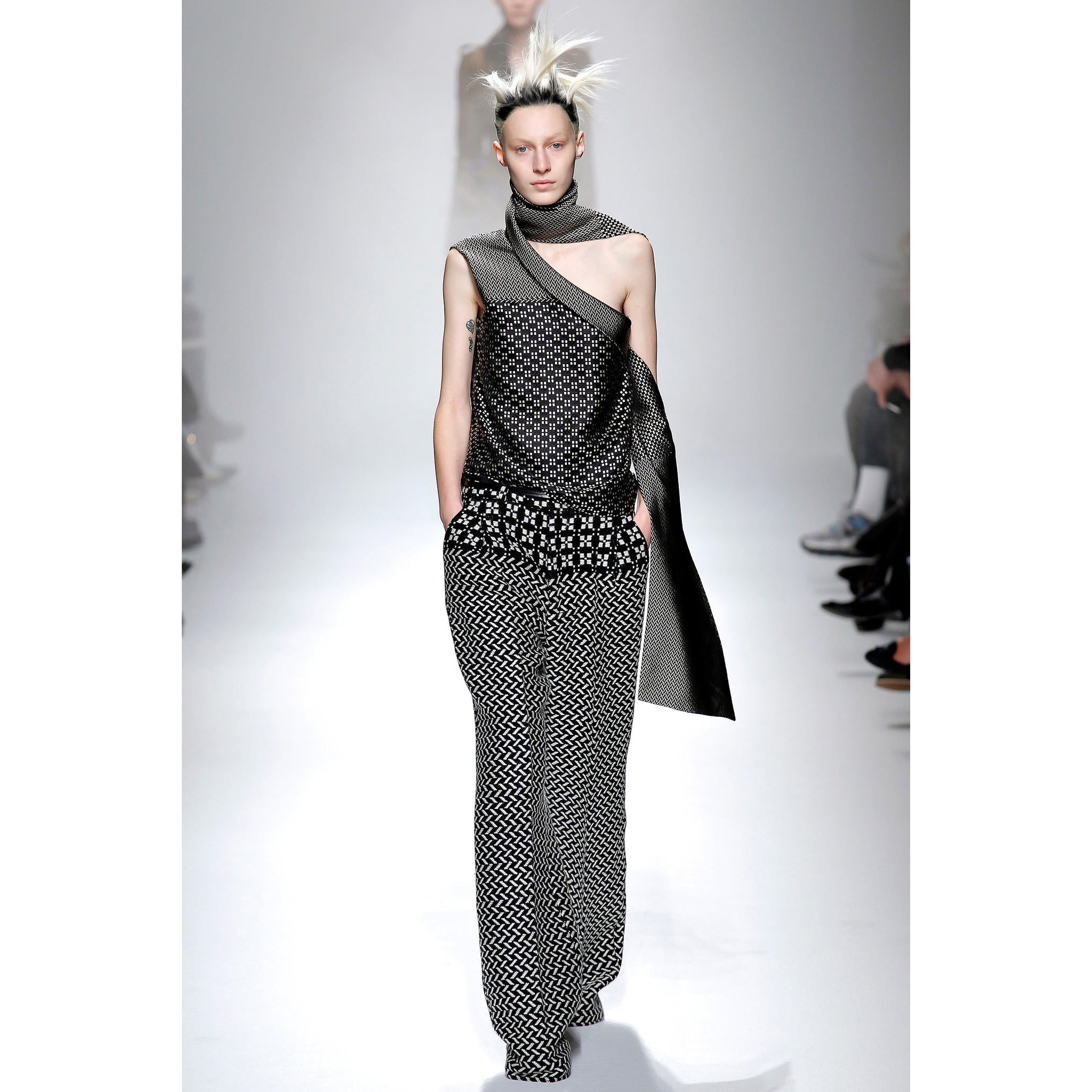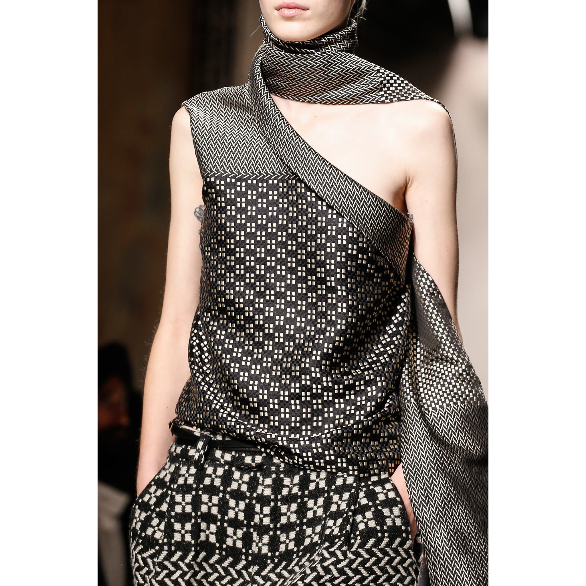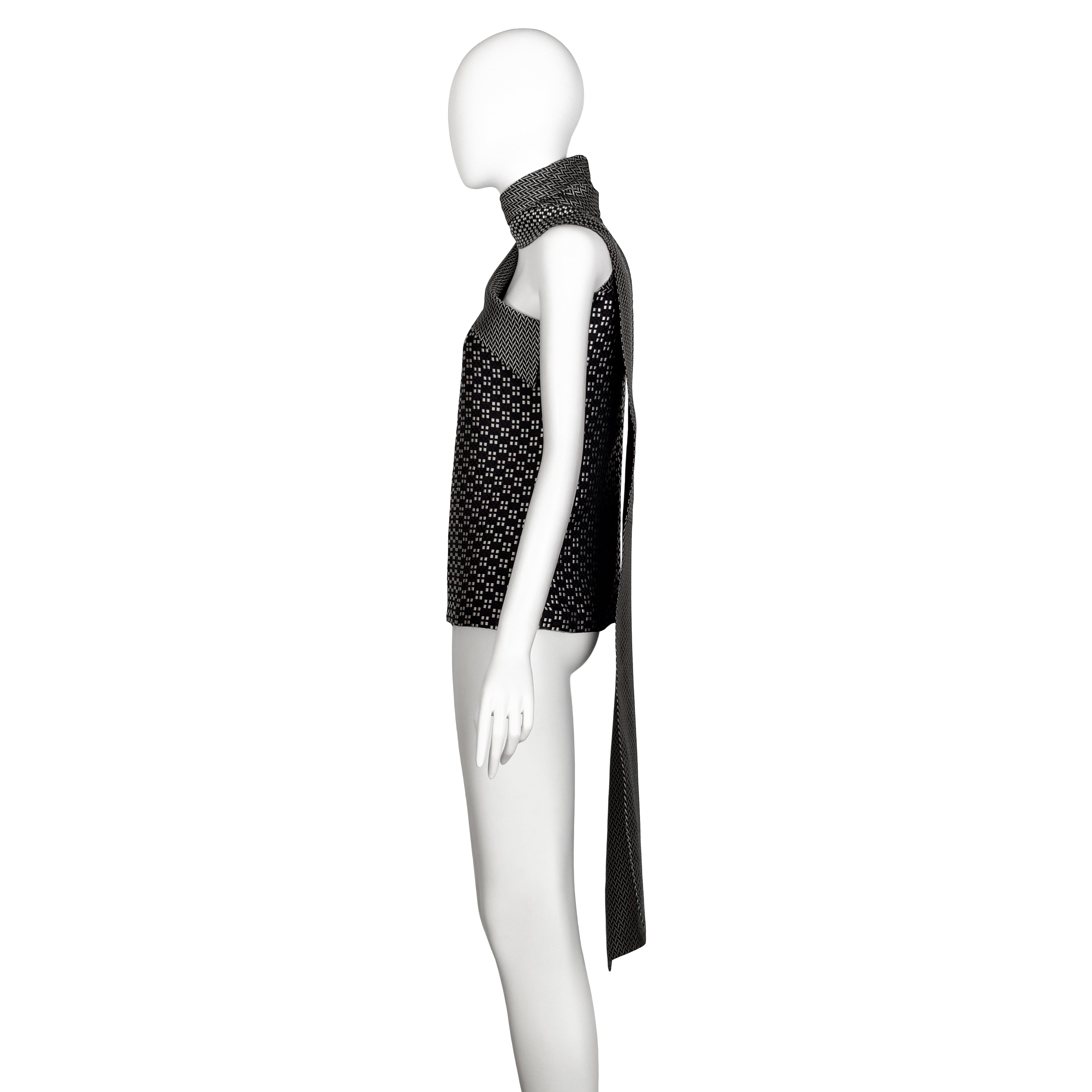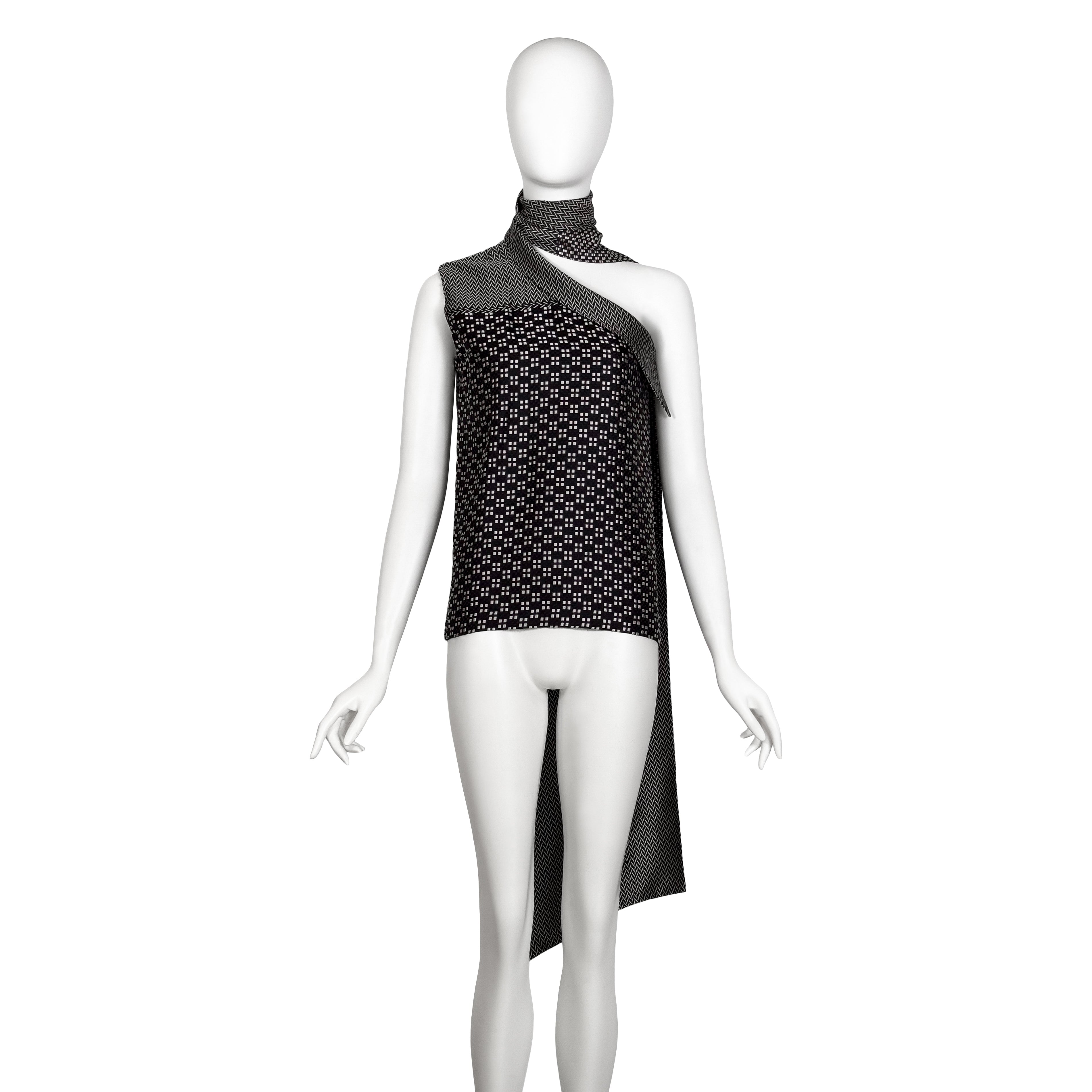 VINTAGE HAIDER ACKERMANN AW 2013 BLACK & WHITE GEO PRINT ASYMMETRICAL TOP