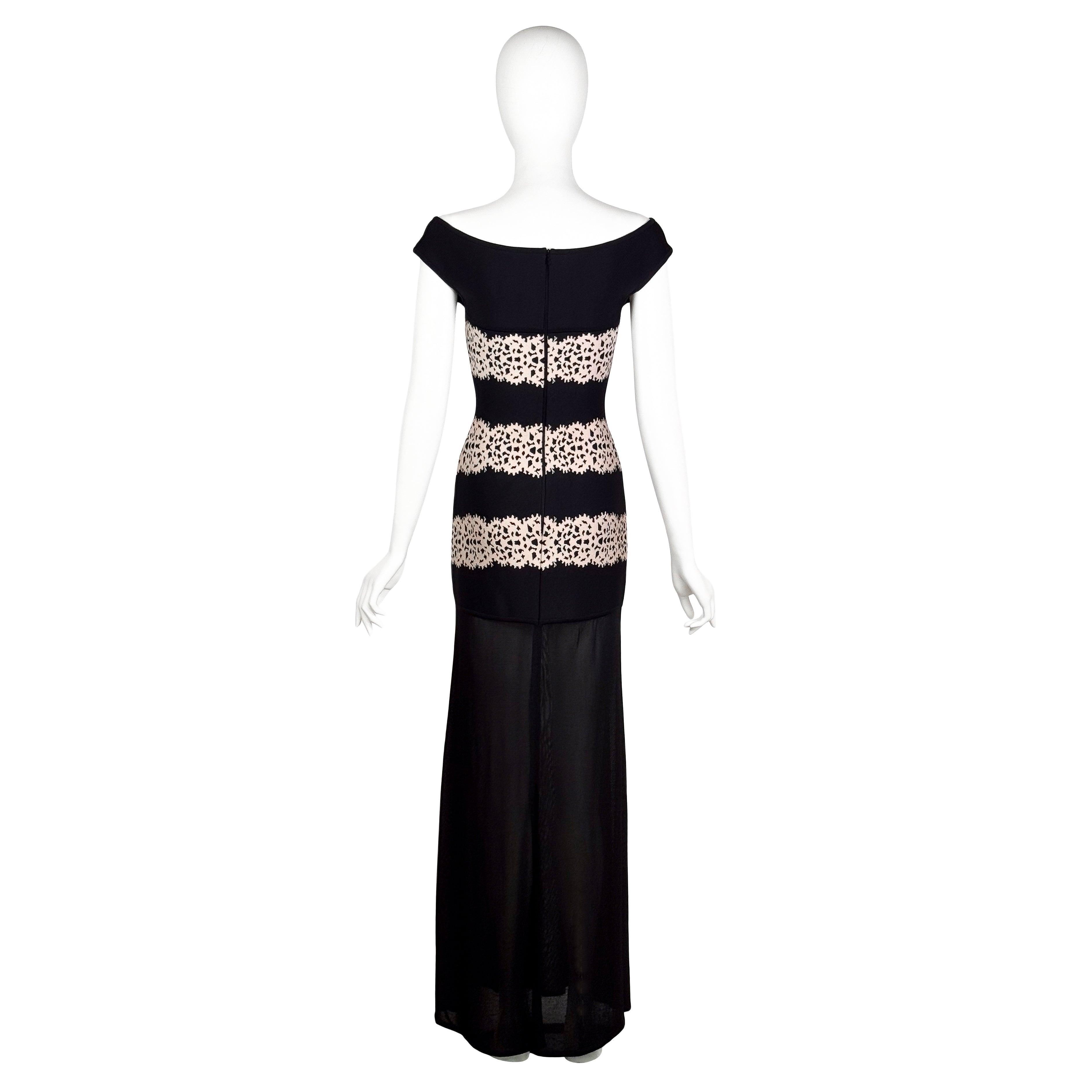 VINTAGE HERVÉ LÉGER AW 1997 BLACK & NUDE LACE PRINT GOWN