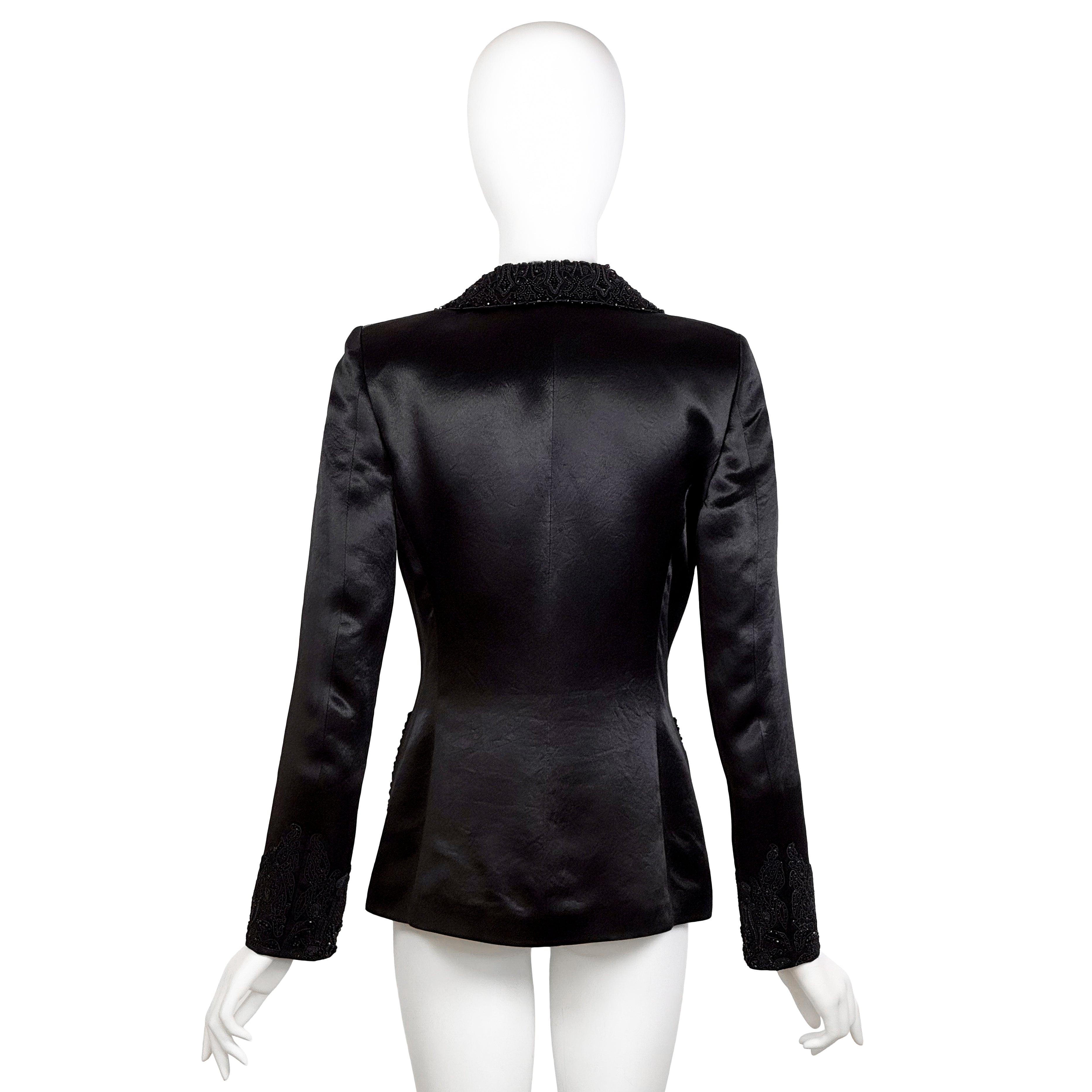 VINTAGE JIL SANDER 1990'S BLACK SATIN BEADED DINNER JACKET