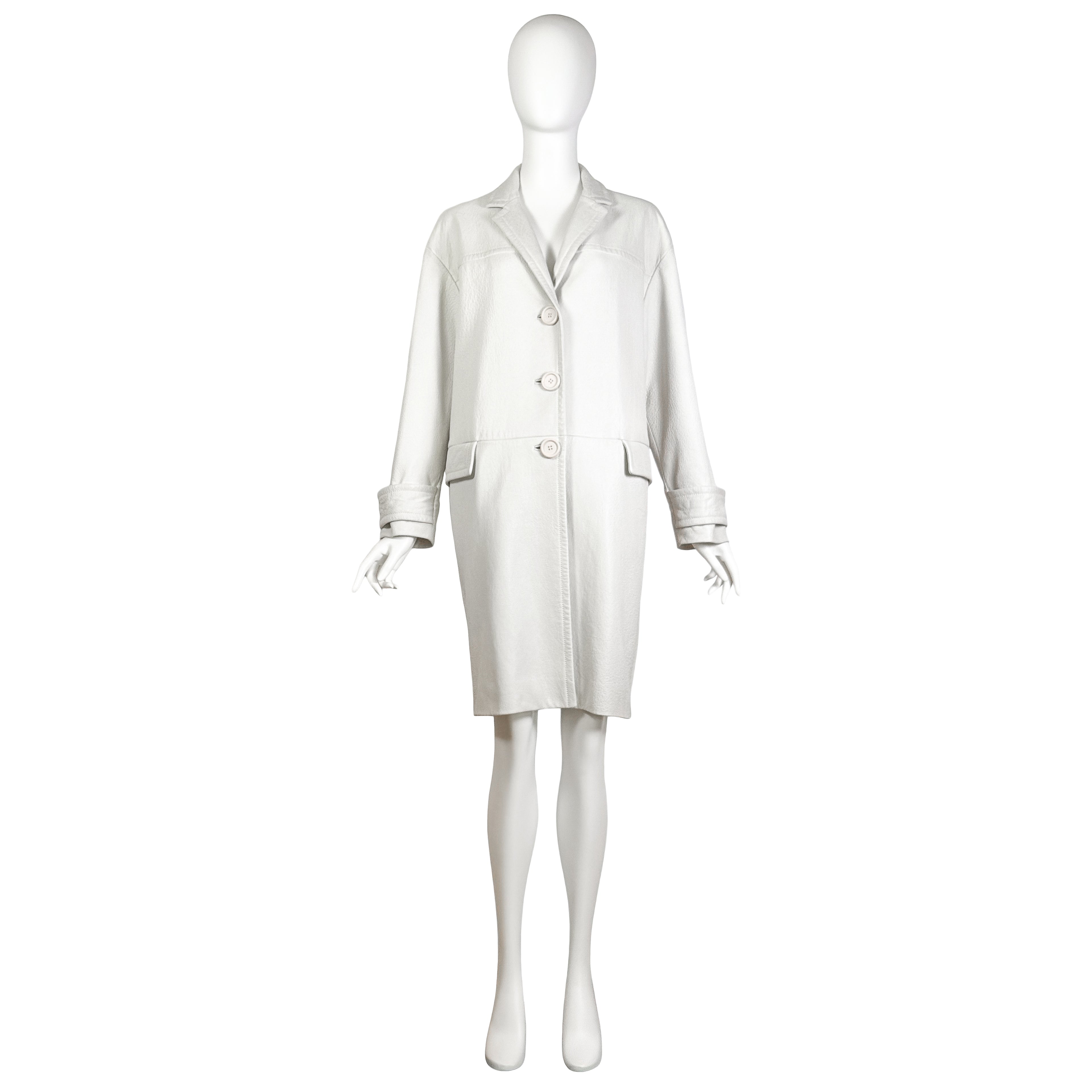 VINTAGE MIU MIU SS 2015 WHITE LEATHER CAR COAT