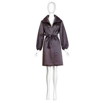 VINTAGE PRADA GREY TEXTURED SATIN BELTED COAT