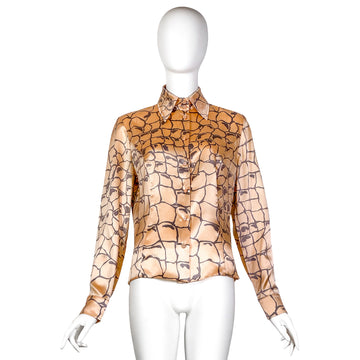 VINTAGE VALENTINO PEACH & GREY NET PRINT SILK BLOUSE