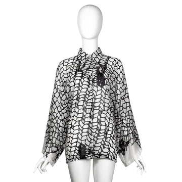 VINTAGE ANN DEMEULEMEESTER SS 2001 WHITE & BLACK NET PRINT SHIRT